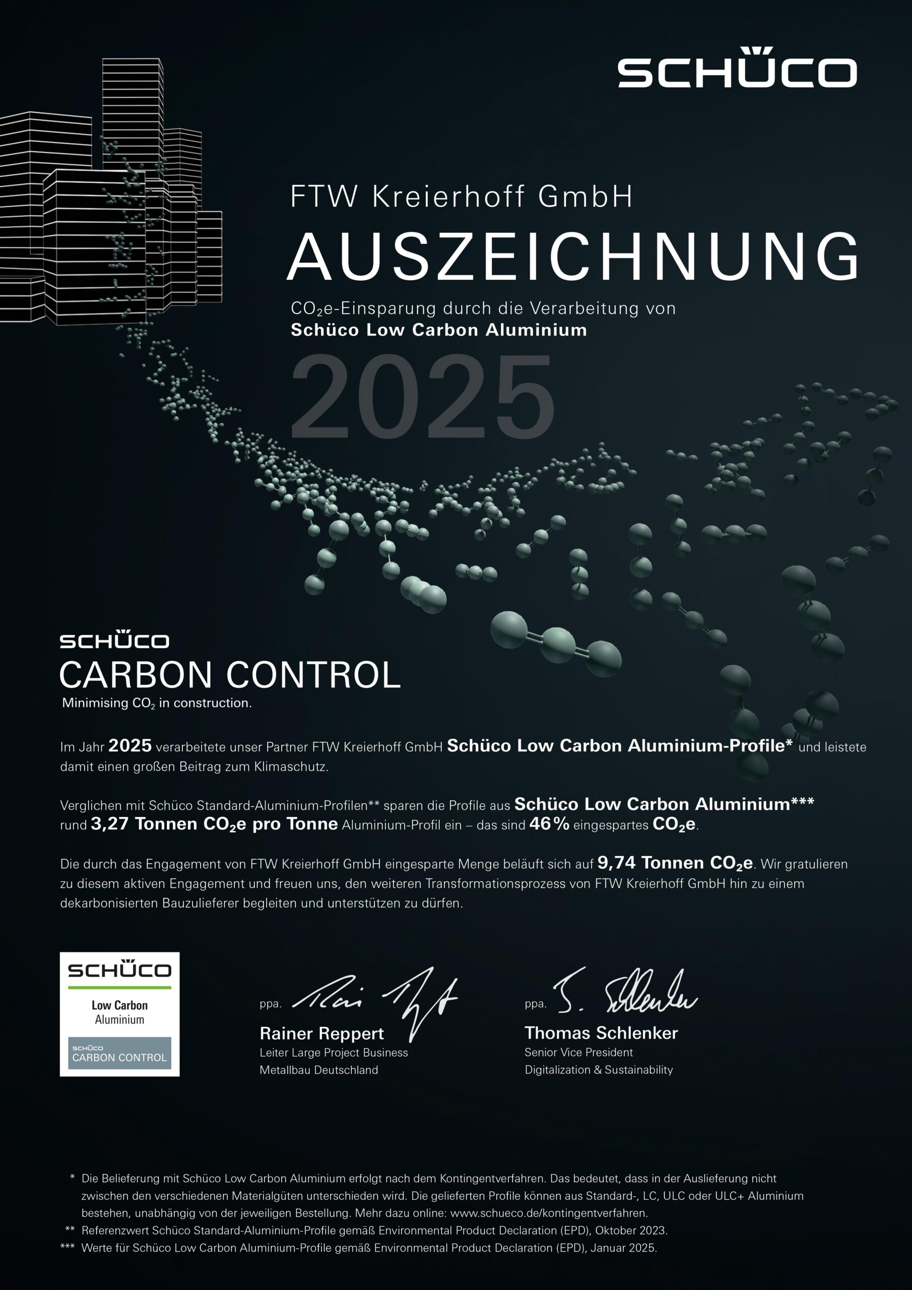 “Im Jahr 2025 verarbeitete unser Partner FTW Kreierhoff GmbH Schüco Low Carbon Aluminium-Profile* und leistete